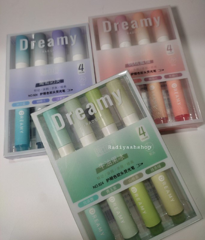 • Kawaii Dreamy 4PCS Pastel Highlighter Pen Marker Set.